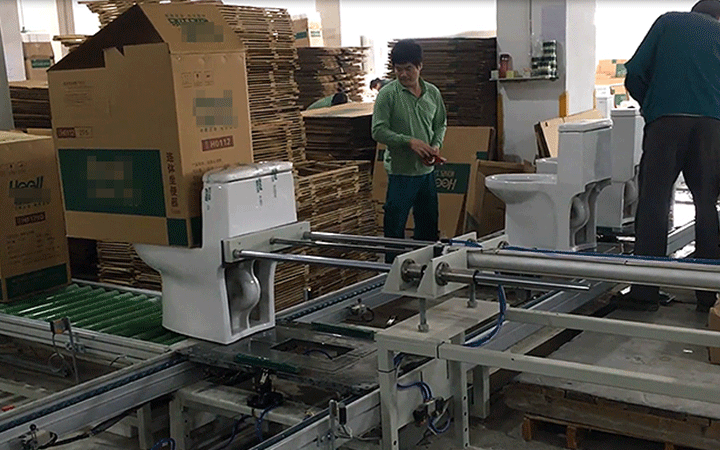 馬桶整廠自動化生產線是由坯體自動輸送干燥存儲、機器人打磨修坯、機器人噴釉、組裝、測試、成品包裝等階段組成,此自動化生產線提高了工作環境性與潔凈度,降低員工的工作疲勞度,為員工從簡單勞動向智力勞動的轉移,終實現馬桶整廠自動化生產。