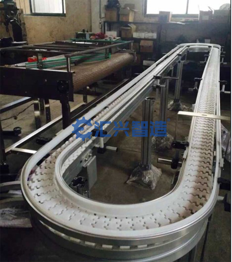 4、設備布局靈活。可以在一條輸送線上完成水平、傾斜和轉彎輸送。