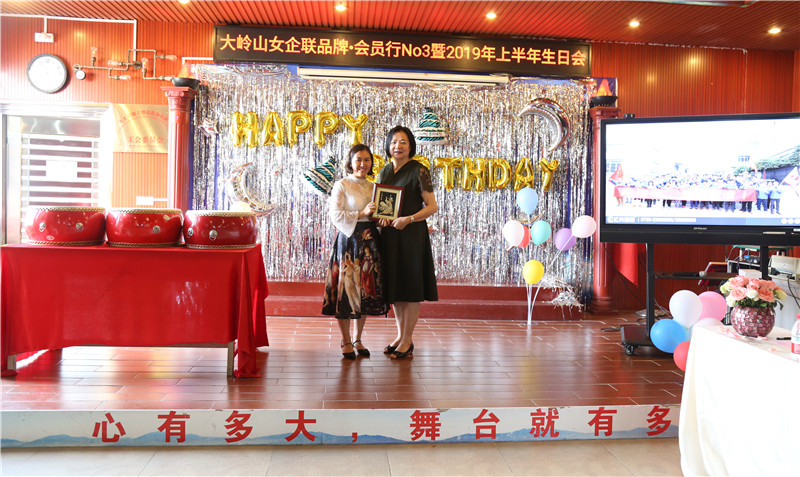 隨后,女企聯蔣會長代表大嶺山女企聯上臺向匯興智造集團贈送“品牌·會員行”金雕,現場氣氛更加熱烈。分享交流會結束后,大家懷著美妙的心情,伴著幸福的音符,唱著動聽的生日歌,“女神們”紛紛上臺為女企聯2019年上半年生日的姐妹們慶祝生日,場面溫馨、浪漫、和諧,令人久久不能忘懷,大家在一片歡聲笑語中度過了美好的一天。
