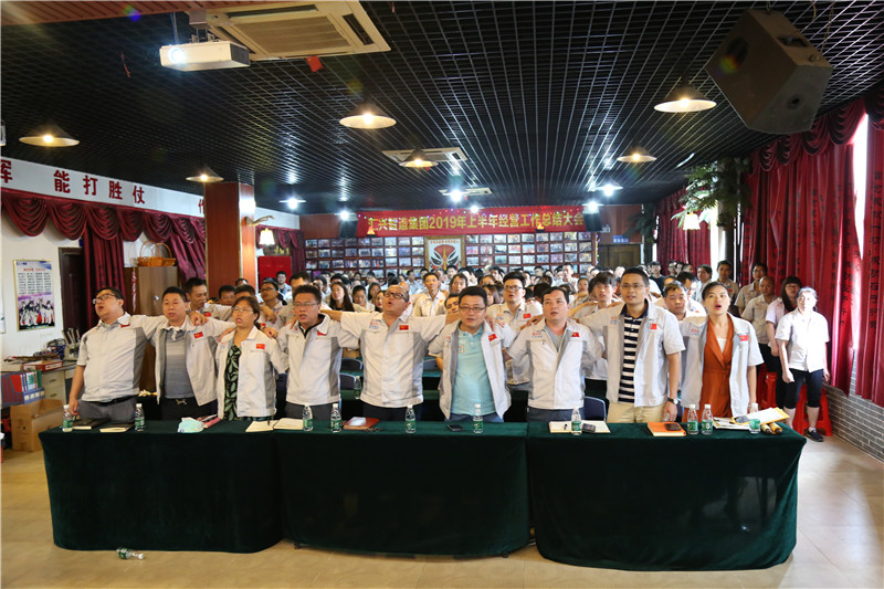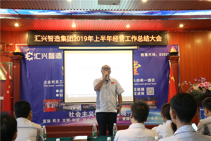 大會最后一項議程由董事長鐘輝作2019年上半年經營工作總結以及2019下半年工作部署。鐘董圍繞公司的軟實力打造和硬實力建設,要求全體干部和職工在下半年要以只爭朝夕的緊迫感和使命感,狠抓落實“258行動計劃”。【匯興智造258行動計劃:2:堅持企業硬實力和品牌軟實力兩個基本點,堅持設備智造和配件銷售兩條腿走路,堅持國內市場和國外市場兩只手發力;5:主動做好個人的心態管理、目標管理、時間管理、學習管理、行動管理等五項管理;8:主動發揚“5+2”、“白+黑”的艱苦奮斗精神,每一位員工都要堅守崗位,既要出工,也要出活,特別是領導干部要帶頭利用晚上1小時進行學習和總結,確保完成2019年集團智能制造板塊2.58億元的經營業績目標!】