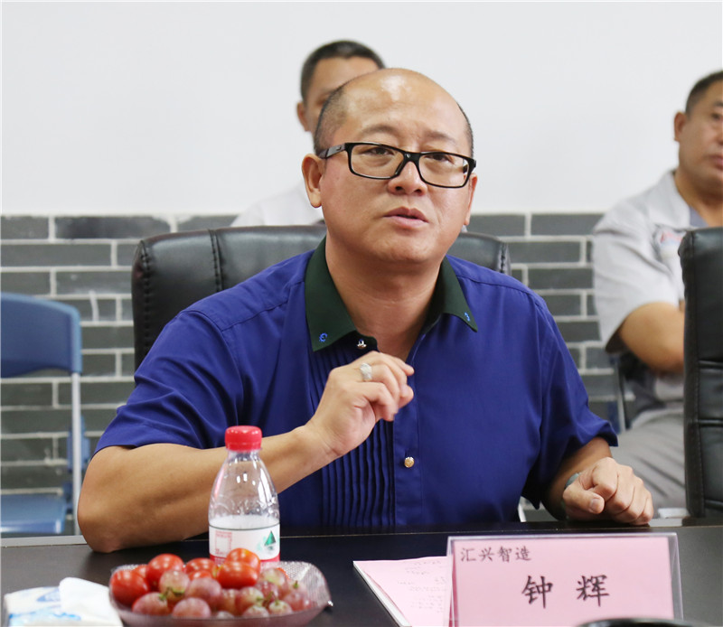 匯興智造集團鐘輝董事長代表公司熱烈歡迎各位領導及專家的盛情來訪,結合公司十九年的發展歷程闡述公司未來發展戰略和在知識產權、專利技術、標準化建設等方面的布局,贏得來訪賓客的陣陣掌聲。