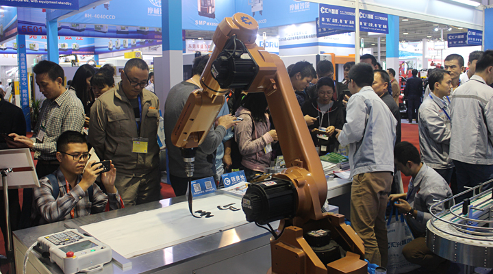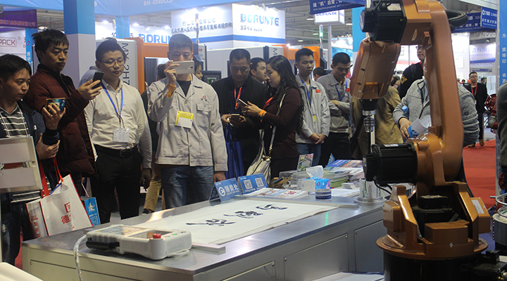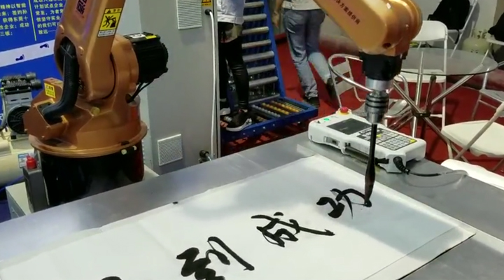 匯興智造推崇中國傳統(tǒng)文化,一直以傳承弘揚(yáng)中國文化為己任,把中國傳統(tǒng)文化揉入工廠運(yùn)營、產(chǎn)品設(shè)備已是一派自然而然。由匯興智造自主研發(fā)的書法機(jī)器人在本次博覽會(huì)上大展拳腳,深情演繹中國書法。