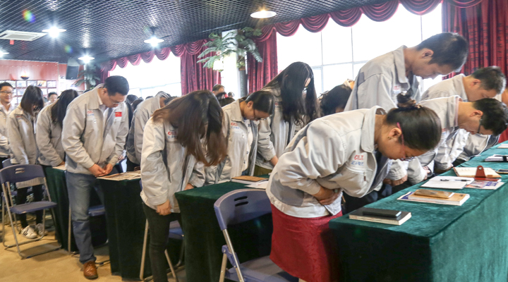 全體員工向企業“孝道、商道、人道”行三鞠躬禮
