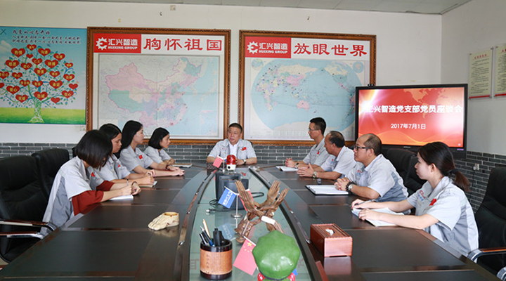 2017年7月1號是個特別的日子,不僅是中國共產黨成立紀念日,也是香港回歸20周年紀念日,同時也是匯興智造第一次全體黨員會議的召開日。在這個特別的日子,匯興智造黨支部全體黨員在月度大會上,由全體黨員同志們集體上臺宣誓,重溫《入黨誓詞》,由匯興智造總工程師許光輝教授領誓,其余黨員們跟誓。在這莊嚴神圣的時刻,全體黨員表達了對中國共產黨的忠誠和信念。