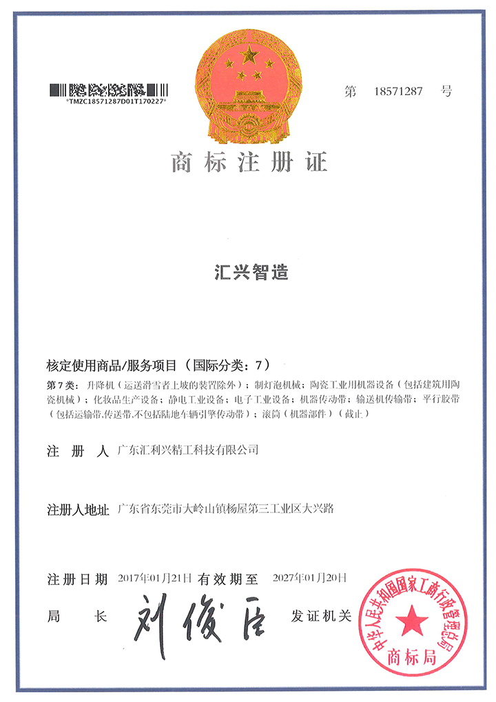 隨著科技進步與技術創新不斷發展,自主知識產權儲備,尤其是創造性較高的發明專利已成為企業發展的核心競爭力。近日,廣東匯興智造股份有限公司(股票代碼:839258)又新增一項發明專利——《一種LED產品的在線組裝老化集成線及其組裝老化工藝》。此外,“匯興智造”注冊商標(第7類)還獲準在升降機、制燈泡機械、陶瓷工業用機器設備、化妝品生產設備、靜電工業設備、電子工業設備、機器傳送帶、輸送機傳輸帶、平行膠帶、滾筒等產品宣傳上使用。