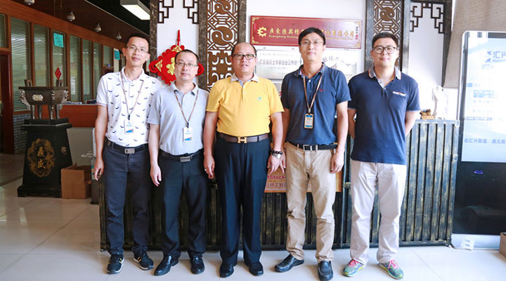 2017年6月28日,東莞市大嶺山鎮工商局王毅局長、袁洪副局長、張股長和鐘股長一行蒞臨廣東匯興精工智造股份有限公司(股票代碼:839258)調研指導。匯興智造董事長鐘輝對大嶺山鎮領導的到來表示熱烈的歡迎,并陪同他們參觀了匯興智造獨具特色且富有濃郁文化氣息的工業4.0智能裝備體驗館,隨后雙方就公司的發展情況等問題展開了深入的交流和探討。