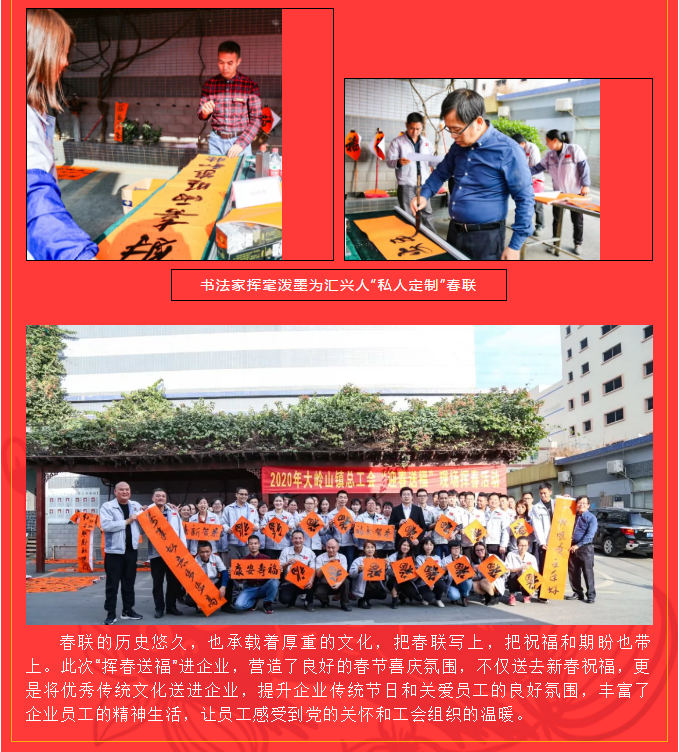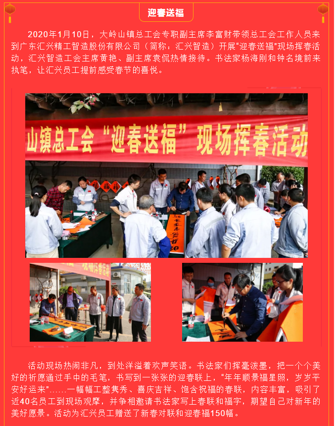 翰墨飄香送春聯(lián),文化進(jìn)企暖人心——鎮(zhèn)總工會(huì)來匯興開展“迎春送福”現(xiàn)場揮春活動(dòng)