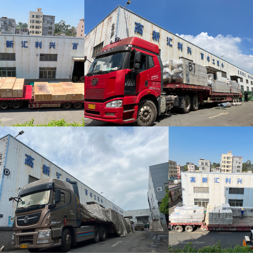 ,待檢查完,滿(mǎn)載貨物的數(shù)輛運(yùn)輸車(chē)緩緩駛出,發(fā)往客戶(hù)項(xiàng)目現(xiàn)場(chǎng)。